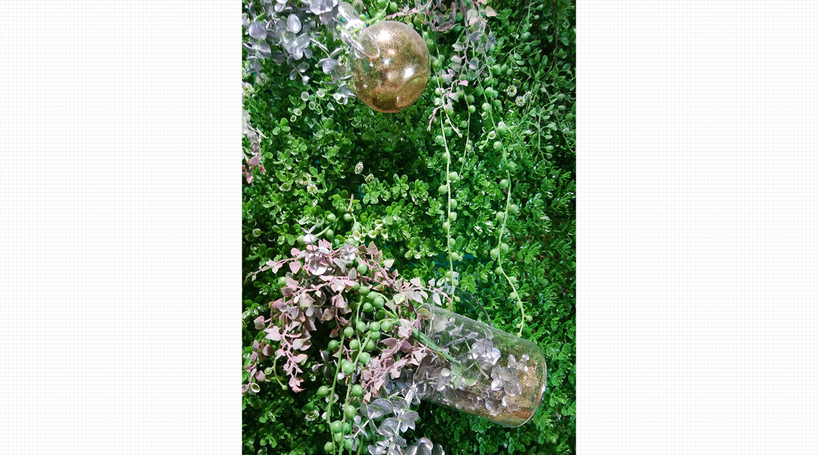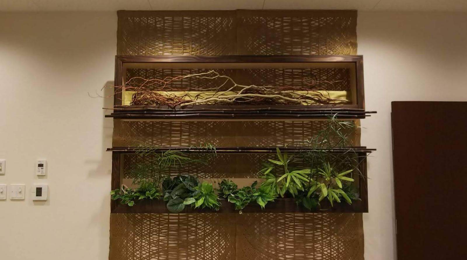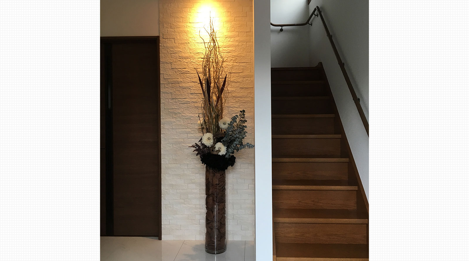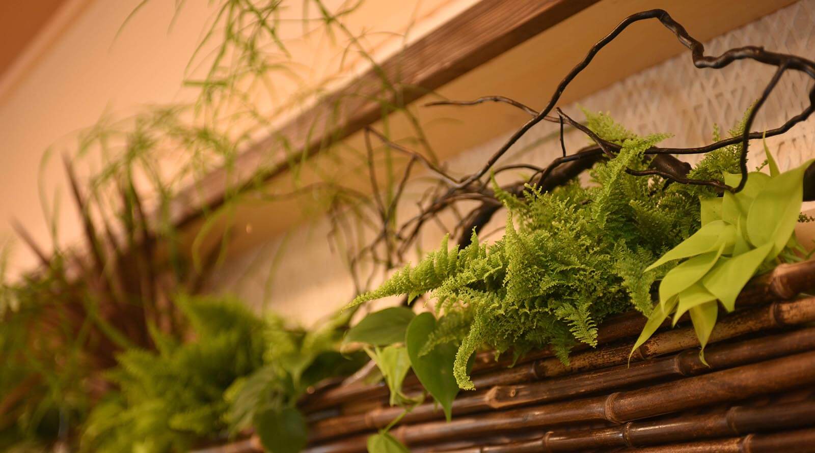 空間に合わせ、永くお楽しみ頂けるような素材を選んでおります。ドライフラワー、アーティフィシャルフラワー(高品質造花)をはじめとして、流木、竹、アクリルその他にも様々な素材を使用する可能性がございます。